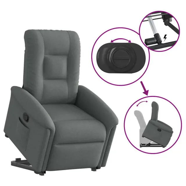 vidaXL Naslanjač s funkcijo vstajanja temno sivo blago
