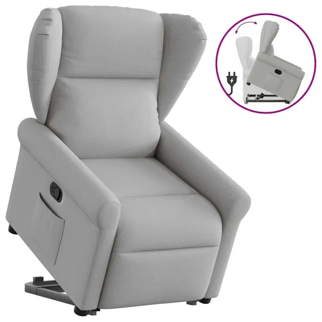 vidaXL Naslanjač s funkcijo vstajanja sivo blago