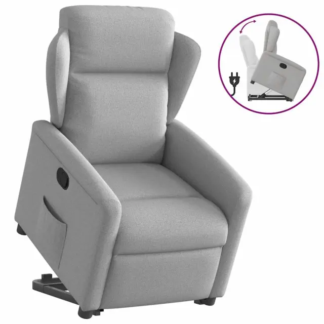 vidaXL Naslanjač s funkcijo vstajanja sivo blago