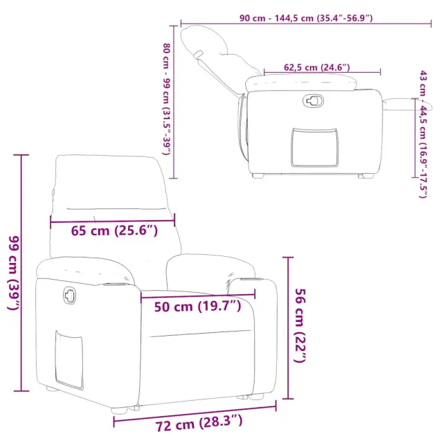 • Dimenzije v sedečem položaju: 72 x 90 x 99 cm (Š x G x V)