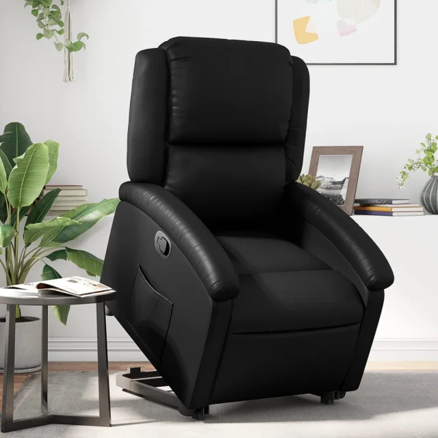 vidaXL Naslanjač s funkcijo vstajanja črno umetno usnje