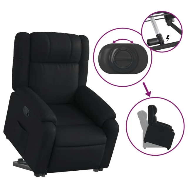 vidaXL Naslanjač s funkcijo vstajanja črno umetno usnje