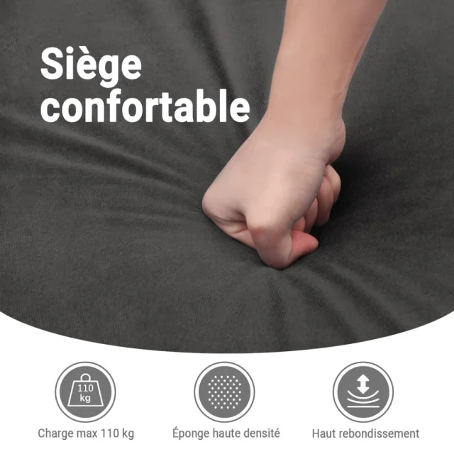 • Udobno sedenje: Debelo oblazinjen sedež, naslonjalo in široki nasloni za roke, prekriti z žametom, zagotavljajo prijeten in topel občutek, da bo sedenje udobno. Žamet je mehka in udobna tkanina, ki je prijetna do kože.