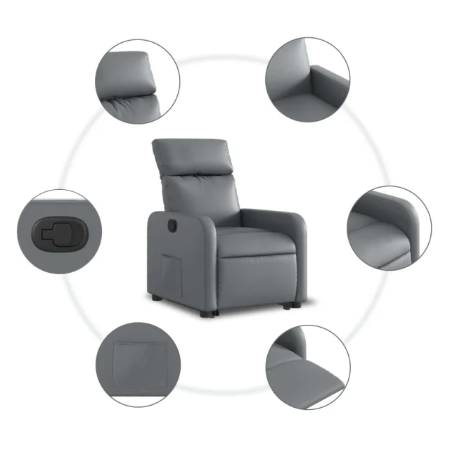 vidaXL Naslanjač s funkcijo vstajanja siva umetno usnje