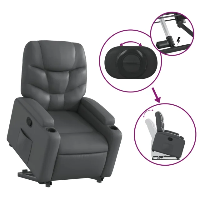 vidaXL Naslanjač s funkcijo vstajanja siva umetno usnje