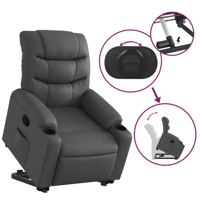 vidaXL Naslanjač s funkcijo vstajanja siva umetno usnje