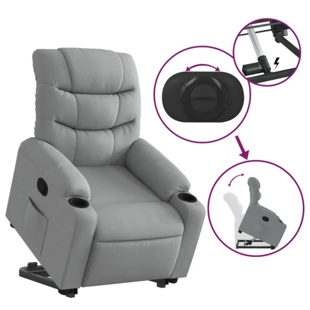 vidaXL Naslanjač s funkcijo vstajanja svetlo sivo blago
