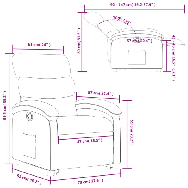 • Funkcija ročnega nagiba: Ta stol z nagibom ima ročaj na desni strani. S preprostim potegom ročaja lahko ročno nastavite naslon za noge in naslonjalo za hrbet v poljuben položaj glede na vaše udobje. Ta funkcija omogoča največji nagib 135 stopinj. Poleg tega lahko naslonjalo hitro vrnete na prvotno mesto z enostavnim potegom ročaja.