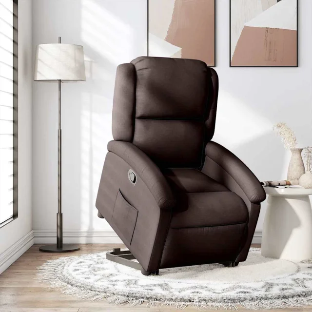 vidaXL Naslanjač s funkcijo vstajanja temno rjavo blago