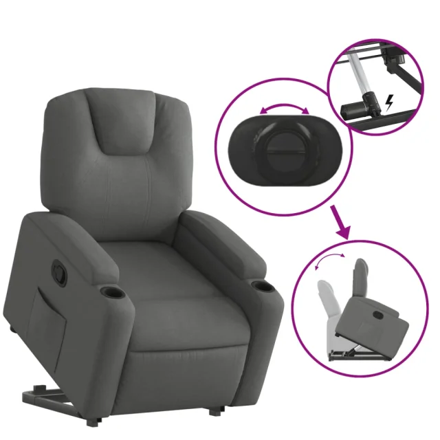 vidaXL Naslanjač s funkcijo vstajanja temno sivo blago