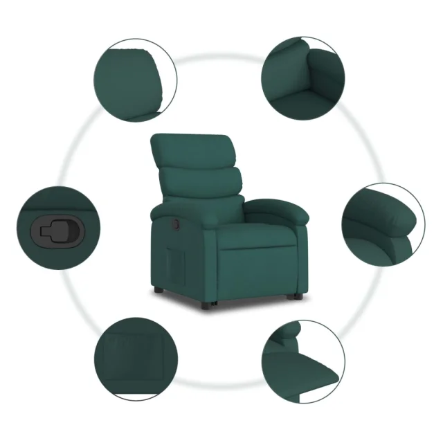 vidaXL Naslanjač s funkcijo vstajanja temno zeleno blago