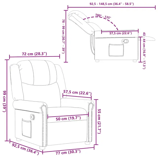 • Funkcija ročnega nagiba: Ta stol z nagibom ima ročaj na desni strani. S preprostim potegom ročaja lahko ročno nastavite naslon za noge in naslonjalo za hrbet v poljuben položaj glede na vaše udobje. Ta funkcija omogoča največji nagib 135 stopinj. Poleg tega lahko naslonjalo hitro vrnete na prvotno mesto z enostavnim potegom ročaja.