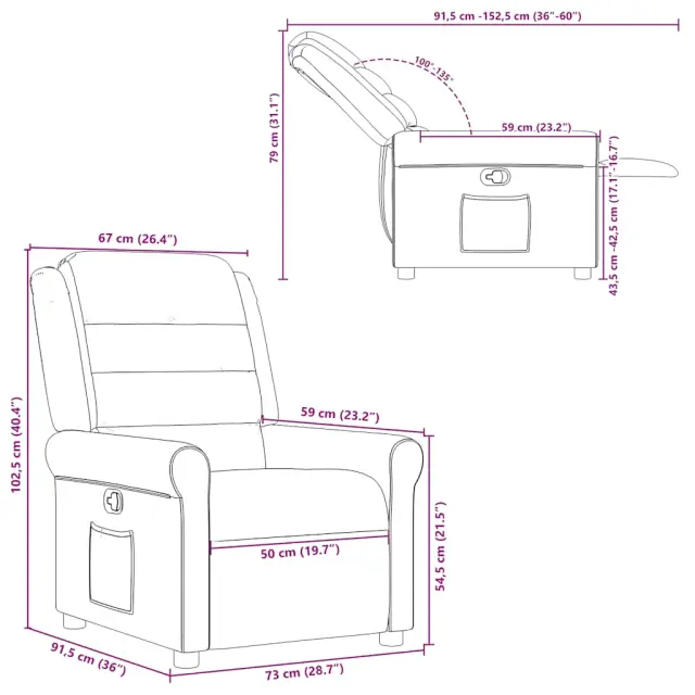 • Priročen stranski žep: Ta naslanjač ima stranski žep za daljinski upravljalnik, v katerem boste imeli svoje potrebščine na dosegu roke.