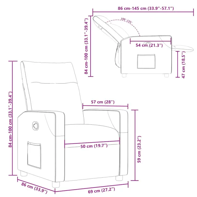 • Priročen stranski žep: Ta naslanjač ima stranski žep za daljinski upravljalnik, v katerem boste imeli svoje potrebščine na dosegu roke.