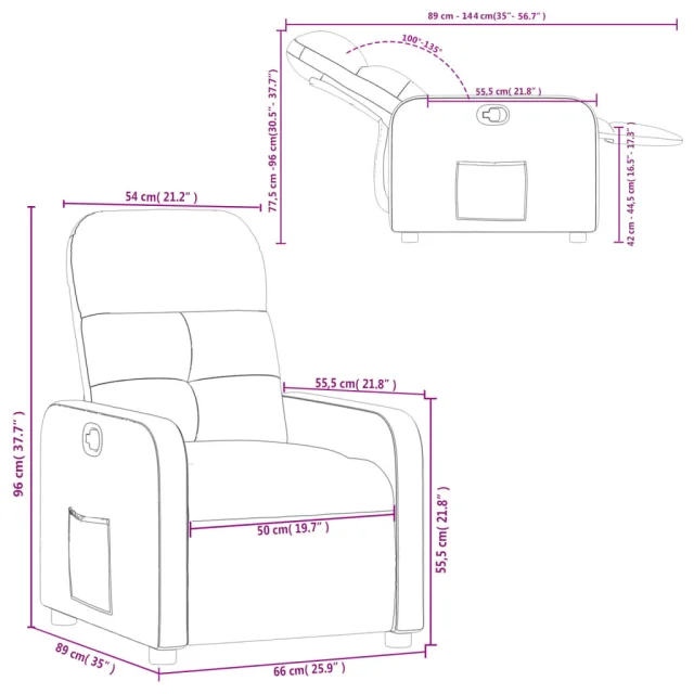 • Funkcija ročnega nagiba: Ta stol z nagibom ima ročaj na desni strani. S preprostim potegom ročaja lahko ročno nastavite naslon za noge in naslonjalo za hrbet v poljuben položaj glede na vaše udobje. Ta funkcija omogoča največji nagib 135 stopinj. Poleg tega lahko naslonjalo hitro vrnete na prvotno mesto z enostavnim potegom ročaja.