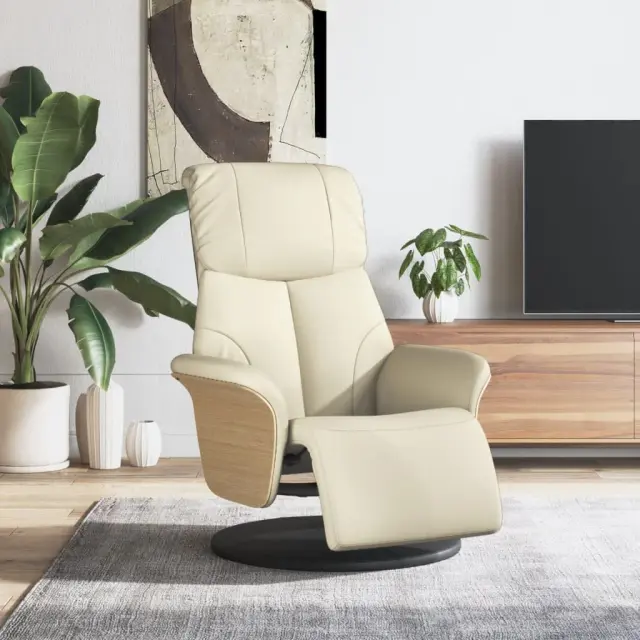 vidaXL Naslanjač z naslonom za noge krem umetno usnje