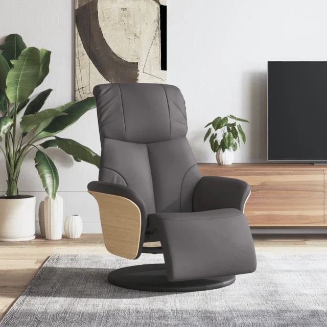 vidaXL Naslanjač z naslonom za noge sivo umetno usnje