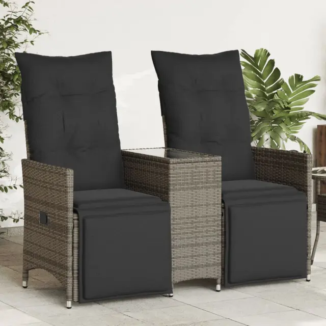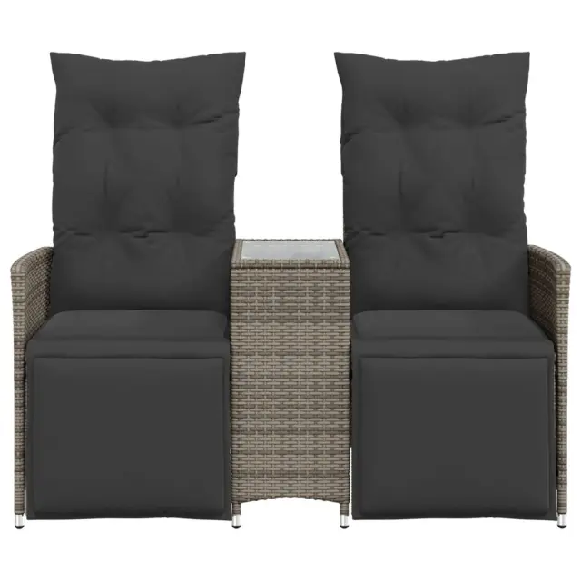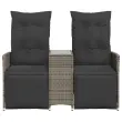 vidaXL Naslanjač za 2 osebi z mizico siv poli ratan
