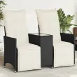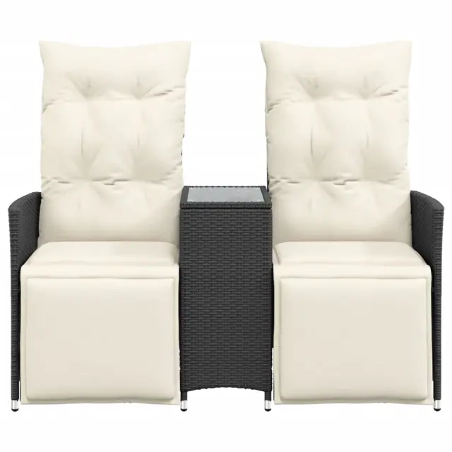 vidaXL Naslanjač za 2 osebi z mizico črn poli ratan