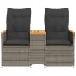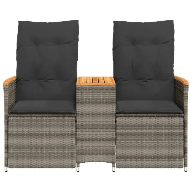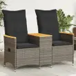 vidaXL Naslanjač za 2 osebi z mizico siv poli ratan