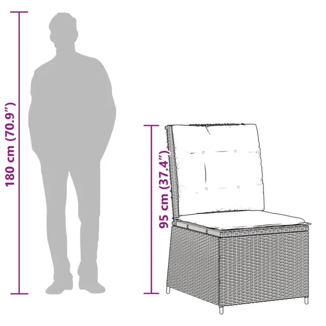 vidaXL Nastavljiv vrtni kavč z blazinami siv poli ratan