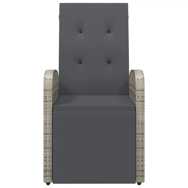 vidaXL Nastavljiv vrtni stol z blazinami siv poli ratan