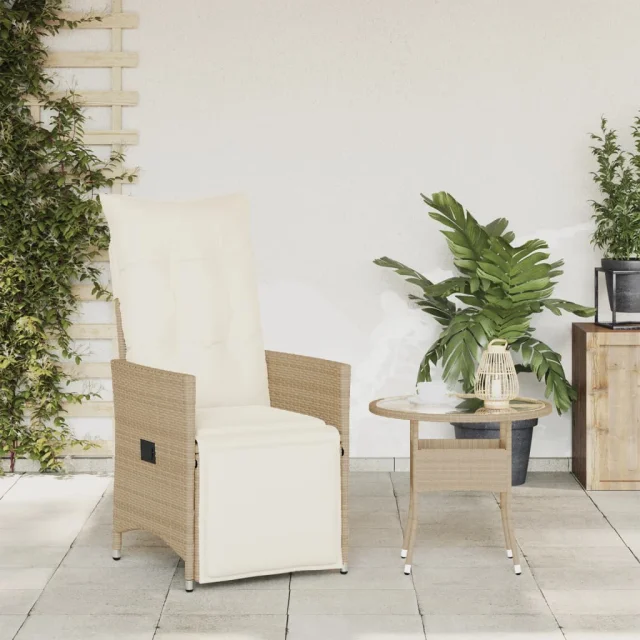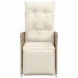 vidaXL Nastavljiv vrtni stol z blazinami bež poli ratan