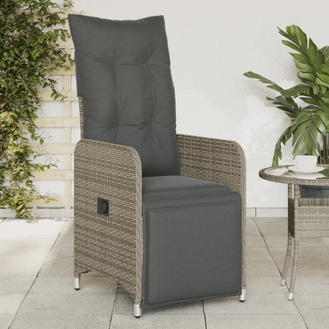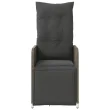 vidaXL Nastavljiv vrtni stol z blazinami siv poli ratan