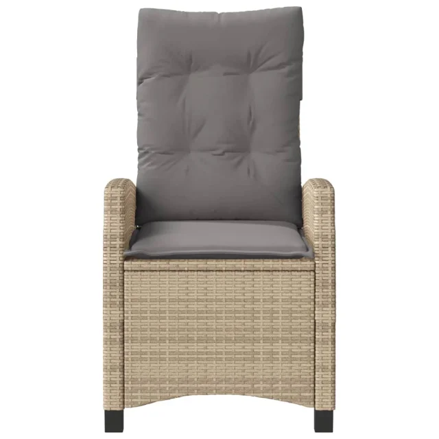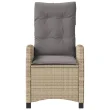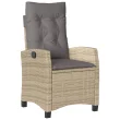 vidaXL Nastavljiv vrtni stol z blazino bež poli ratan