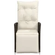 vidaXL Nastavljiv vrtni stol z blazino rjav poli ratan