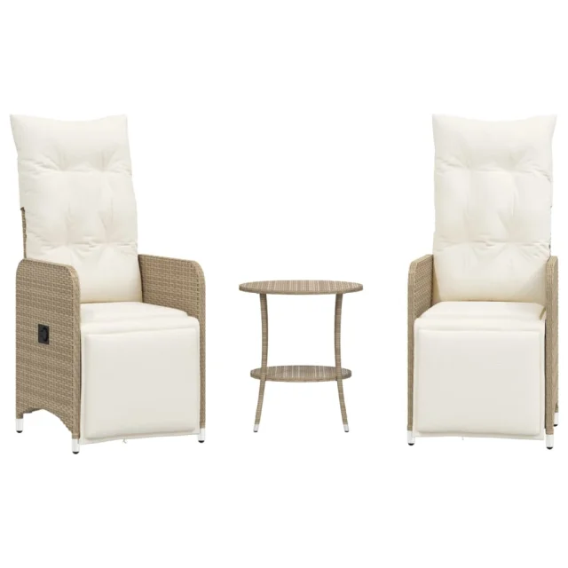 vidaXL Nastavljivi Vrtni naslanjač 2 kosa z mizico bež poli ratan