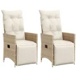 vidaXL Nastavljivi vrtni stoli 2 kosa z blazinami bež poli ratan