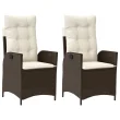 vidaXL Nastavljivi vrtni stoli 2 kosa z blazinami rjav poli ratan