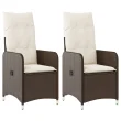 vidaXL Nastavljivi vrtni stoli 2 kosa z blazinami rjav poli ratan