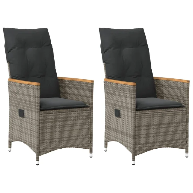 vidaXL Nastavljivi vrtni stoli 2 kosa z blazinami siv poli ratan