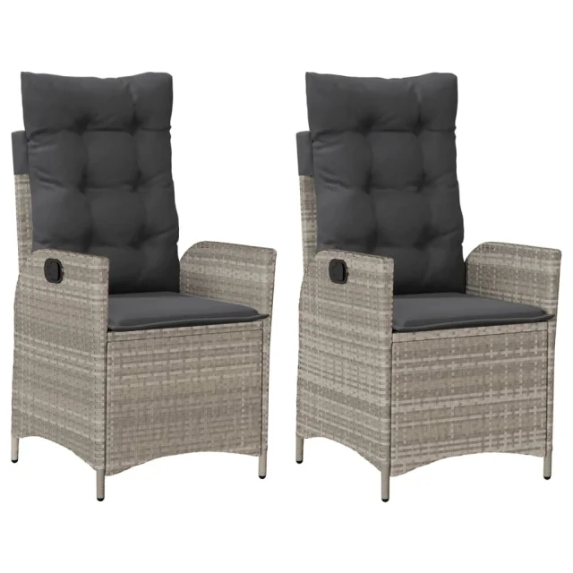 vidaXL Nastavljivi vrtni stoli 2 kosa z blazinami svetlo siv PE ratan