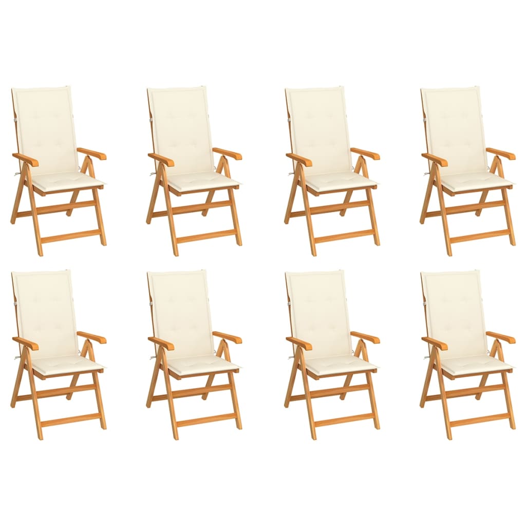 vidaXL Nastavljivi vrtni stoli z blazinami 8 kosov trdna tikovina