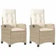 vidaXL Nastavljivi vrtni stoli 2 kosa z blazinami bež poli ratan