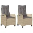 vidaXL Nastavljivi vrtni stoli 2 kosa z blazinami bež poli ratan