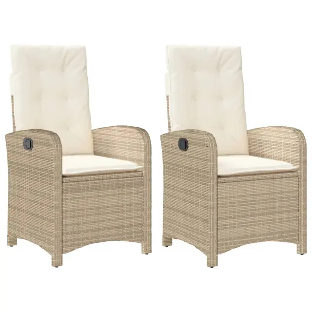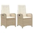 vidaXL Nastavljivi vrtni stoli 2 kosa z blazinami bež poli ratan