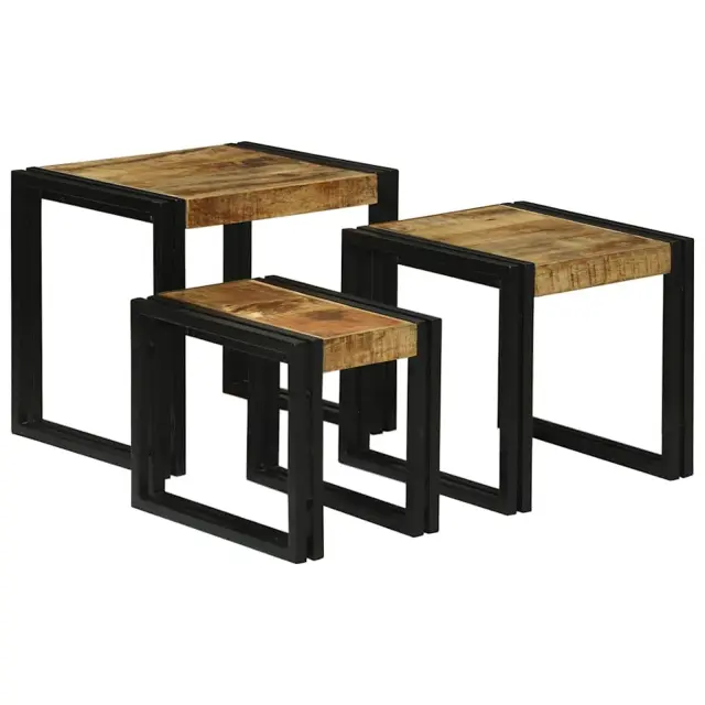 vidaXL Nesting miza 3 pcs Rjava in črna Trden robusten mangov les