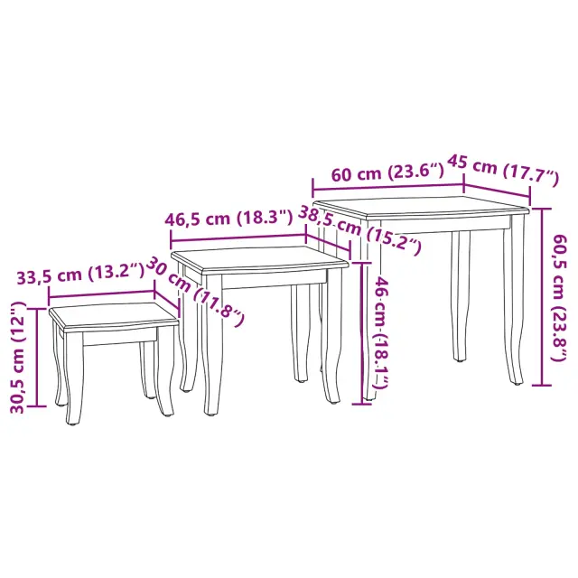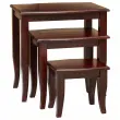 Ta čudovit set klasičnih gnezditvenih miz prinaša tako funkcionalnost kot estetiko. Zasnovane so kot brezčasen dodatek vašemu domu in nudijo fleksibilnost v manjših prostorih, kot so dnevne sobe ali spalnice. Vsaka miza se lepo postavi pod večjo, kar je idealno za majhne prostore. Njihov klasičen dizajn izboljša celoten videz doma in prinaša subtilno lepoto. Mahagonijev les jim daje topel izgled, ki se prilega tako tradicionalnim kot modernim notranjim pohištvom. Perfectne so za postrežbo pijač, prikazovanje dekoracij ali kot improviziran delovni prostor.