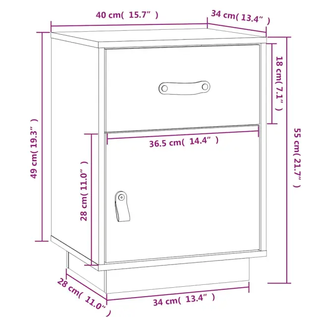vidaXL Nočna omarica 2 kosa bela 40x34x55 cm trdna borovina
