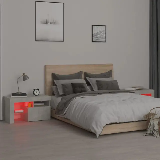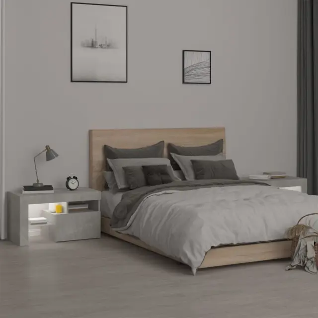vidaXL Nočna omarica 2 kosa z LED lučkami betonsko siva 70x36,5x40 cm