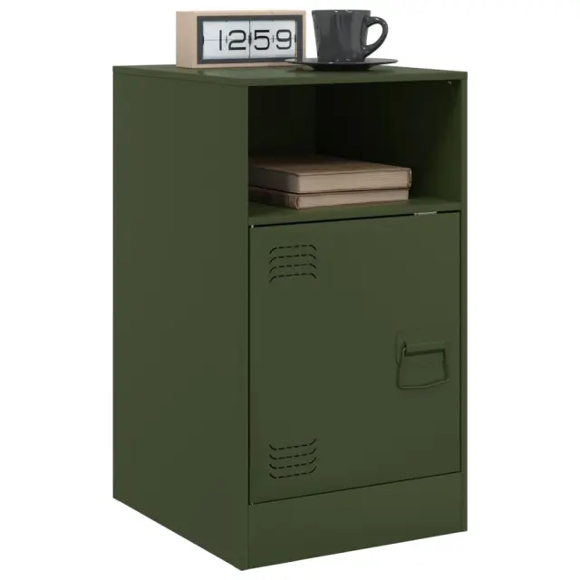Ti nočni omarici s stilskim dizajnom predstavljata brezčasen dodatek za dekor v vaših notranjih prostorih. Stabilen material: Nočna omarica je izdelana iz hladno valjanega jekla. Hladno valjano jeklo je vrsta nizkoogljičega jekla, ki se proizvaja z metodo "hladnega valjanja" in obdeluje pri skoraj običajnih sobnih temperaturah. Hladno valjano jeklo ima bolj gladko površino, večjo trdnost in natančnost.Veliko prostora za shranjevanje: Ta omarica ponuja priročen prostor za shranjevanje vaših revij, knjig, daljinskih upravljalnikov in drugih majhnih predmetov, da bodo dobro urejeni in na dosegu roke.Enostavno vzdrževanje: Mizico je enostavno očistiti z vlažno krpo, poleg tega ne potrebuje veliko vzdrževanja.Praktičen ročaj: Omarici je priložen ročaj, ki olajša odpiranje in zapiranje omare, obenem pa poskrbi za dodatno lepoto. Opozorilo:Da preprečite prevračanje, morate ta izdelek uporabljati z napravo za pritrditev na steno (ni priložena). Barva: Olivno zelenaMaterial: Hladno valjano jekloDimenzije: 34,5 x 39 x 62 cm (Š x G x V)Največja nosilnost (vsaka): 35 kgZ 1 polico1 Predelek z vratiZ 1 kovinskim ročajemPotrebno sestavljanje: DaPaket vsebuje:2 x Nočna omaricaLegal Documents:Več informacij o tem, kako preprečiti prevračanje pohištva, je na voljo tukaj 841772