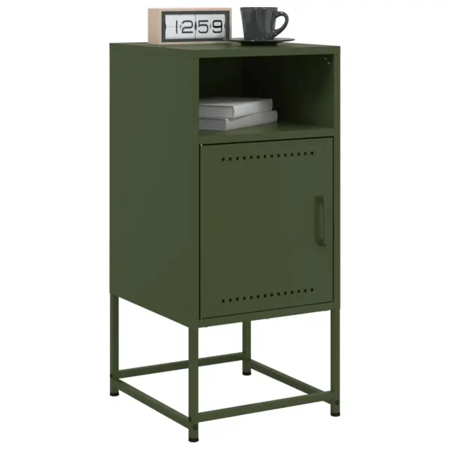 Te nočne omarice v industrijskem slogu so brezčasen dodatek vašemu notranjemu dekorju. Robusten in stabilen okvir: Jeklo je močno, stabilno in trpežno, zato je idealna izbira za številne aplikacije, od proizvodnje pohištva do gradbeništva.Veliko prostora za shranjevanje: Mizica za ob posteljo nudi veliko prostora za shranjevanje različnih vsakodnevnih potrebščin, da bodo dobro urejene in dosegljive.Enostavno čiščenje: Jeklena nočna omarica je odporna na vlago in jo je enostavno očistiti z vlažno krpo.Večnamenska zasnova: Ta omarica je idealna kot nočna omarica ob postelji, stranska mizica ob kavču v dnevni sobi ali kot dodatna omarica v delovni sobi.Funkcija razstavljanja: Na površino mizice za ob posteljo lahko postavite tudi svoje najljubše slike, dekoracije ali rože ter tako obogatite svoje življenje. Opozorilo:Za preprečitev prevračanja je treba ta izdelek uporabiti s priloženo napravo za pritrditev na steno.Barva: Olivno zelenaMaterial: JekloDimenzije (vsaka): 36 x 39 x 78 cm (D x Š x V)Potrebno sestavljanje: DaPaket vsebuje:2 x Nočna omarica 846575
