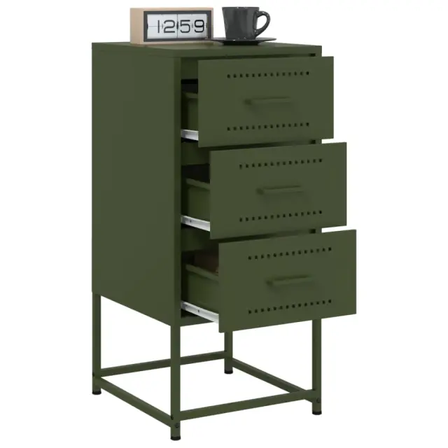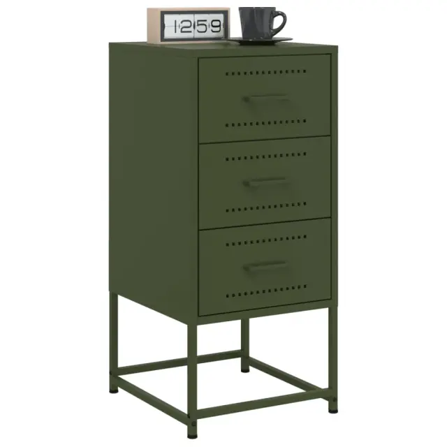 Te nočne omarice v industrijskem slogu so brezčasen dodatek vašemu notranjemu dekorju. Robusten in stabilen okvir: Jeklo je močno, stabilno in trpežno, zato je idealna izbira za številne aplikacije, od proizvodnje pohištva do gradbeništva.Veliko prostora za shranjevanje: Mizica za ob posteljo nudi veliko prostora za shranjevanje različnih vsakodnevnih potrebščin, da bodo dobro urejene in dosegljive.Enostavno čiščenje: Jeklena nočna omarica je odporna na vlago in jo je enostavno očistiti z vlažno krpo.Večnamenska zasnova: Ta omarica je idealna kot nočna omarica ob postelji, stranska mizica ob kavču v dnevni sobi ali kot dodatna omarica v delovni sobi.Funkcija razstavljanja: Na površino mizice za ob posteljo lahko postavite tudi svoje najljubše slike, dekoracije ali rože ter tako obogatite svoje življenje. Opozorilo:Za preprečitev prevračanja je treba ta izdelek uporabiti s priloženo napravo za pritrditev na steno.Barva: Olivno zelenaMaterial: JekloDimenzije (vsaka): 36 x 39 x 78 cm (D x Š x V)Potrebno sestavljanje: DaPaket vsebuje:2 x Nočna omarica 846587