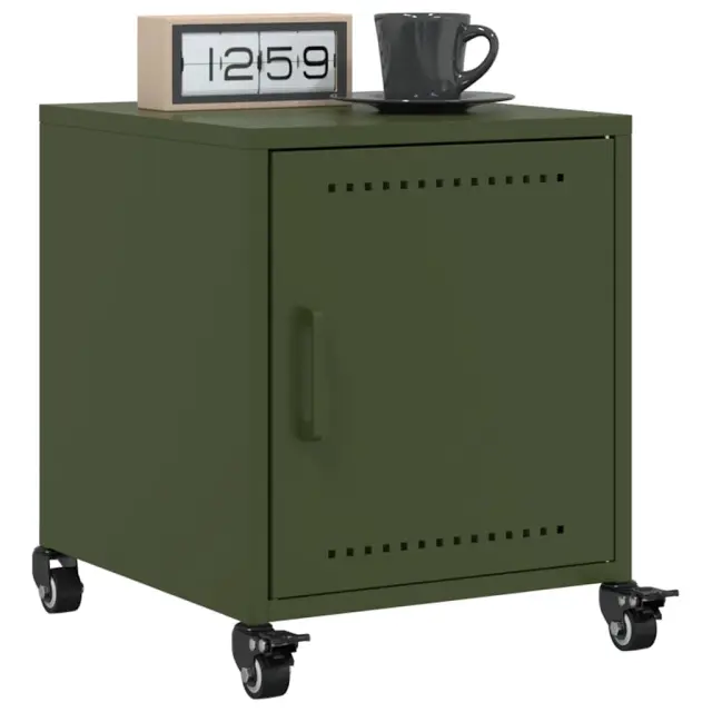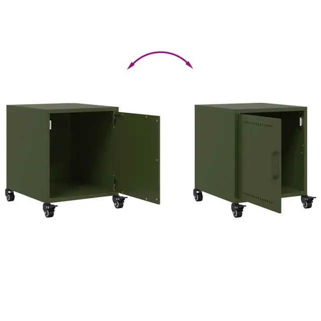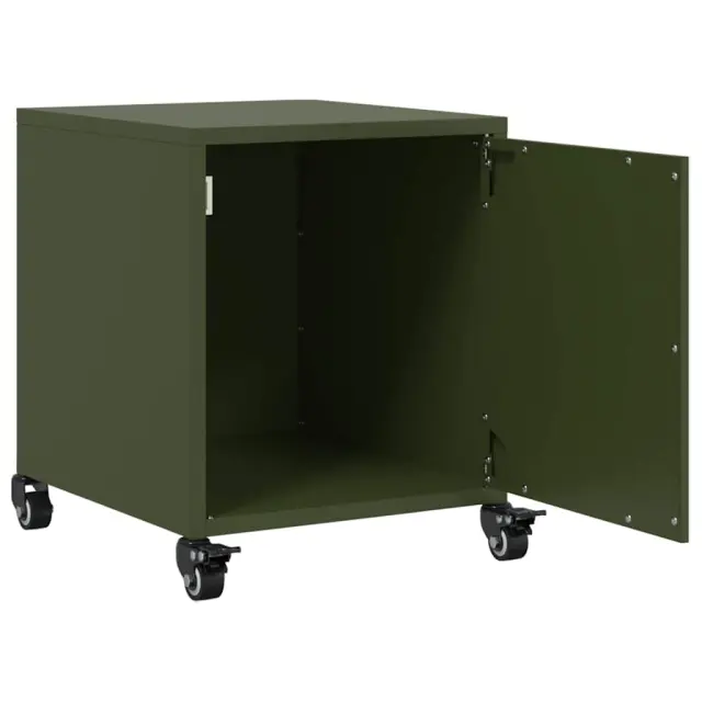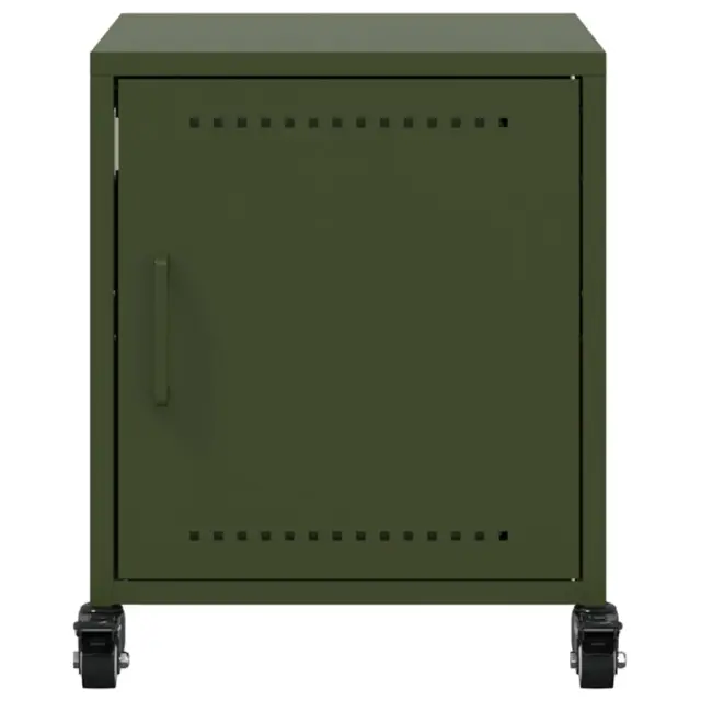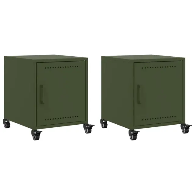 Ti nočni omarici s stilskim dizajnom predstavljata brezčasen dodatek za dekor v vaših notranjih prostorih. Stabilen material: Nočna omarica je izdelana iz hladno valjanega jekla. Hladno valjano jeklo je vrsta nizkoogljičega jekla, ki se proizvaja z metodo "hladnega valjanja" in obdeluje pri skoraj običajnih sobnih temperaturah. Hladno valjano jeklo ima bolj gladko površino, večjo trdnost in natančnost.Veliko prostora za shranjevanje: Ta omarica ponuja priročen prostor za shranjevanje vaših revij, knjig, daljinskih upravljalnikov in drugih majhnih predmetov, da bodo dobro urejeni in na dosegu roke.Enostavno vzdrževanje: Mizico je enostavno očistiti z vlažno krpo, poleg tega ne potrebuje veliko vzdrževanja.Enostavno premikanje: Ta odstavna mizica ima 4 kolesa, ki omogočajo enostavno premikanje in stabilno parkiranje.Praktičen ročaj: Omarici je priložen ročaj, ki olajša odpiranje in zapiranje omare, obenem pa poskrbi za dodatno lepoto.Barva: Olivno zelenaMaterial: Hladno valjano jekloDimenzije: 36 x 39 x 43,5 cm (D x Š x V)1 Predelek z vratiPotrebno sestavljanje: DaPaket vsebuje:2 x Nočna omarica 846623