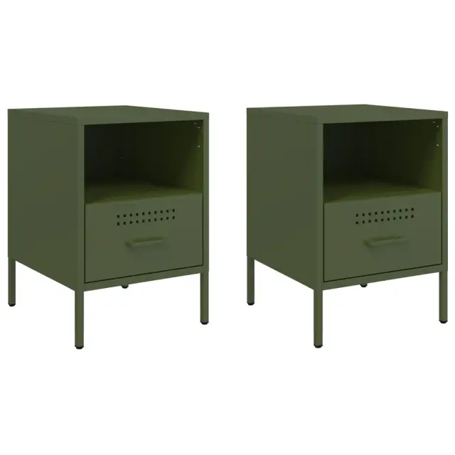 vidaXL Nočna omarica 2 kosa olivno zelena 36x39x50,5 cm jeklo