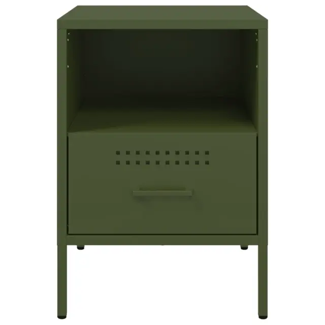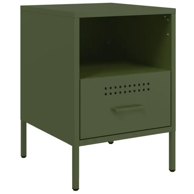 Te robustne nočne omarice v industrijskem slogu so brezčasen dodatek vaši dnevni sobi ali spalnici. Stabilen material: Omarica je izdelana iz hladno valjanega jekla. Hladno valjano jeklo je vrsta nizkoogljičega jekla, ki se proizvaja z metodo "hladnega valjanja" in obdeluje pri skoraj običajnih sobnih temperaturah. Hladno valjano jeklo ima bolj gladko površino, večjo trdnost in natančnost.Veliko prostora za shranjevanje: Ta nočna mizica ponuja veliko prostora za shranjevanje revij, knjig, DVDjev, daljinskih upravljalnikov in drugih majhnih predmetov, da bodo dobro organizirani in na dosegu roke.Nastavljive navojne noge: Ta stranska omarica je opremljena s štirimi nastavljivimi navojnimi nogami, ki se prilagodijo neravnim površinam ter zagotavljajo stabilnost in ravnotežje.Enostavno čiščenje: Kovinsko omarico je enostavno očistiti z vlažno krpo, saj ne potrebuje veliko vzdrževanja. Opozorilo:Za preprečitev prevračanja je treba ta izdelek uporabiti s priloženo napravo za pritrditev na steno.Barva: Olivno zelenaMaterial: Hladno valjano jekloDimenzije: 36 x 39 x 50,5 cm (D x Š x V)Maksimalna nosilnost (vsak sedež): 15 kgS 4 nastavljivimi navojnimi nogamiZ 1 odprtim predelkom in 1 predalomPotrebno sestavljanje: DaPaket vsebuje:2 x Nočna omaricaLegal Documents:Več informacij o tem, kako preprečiti prevračanje pohištva, je na voljo tukaj 843063